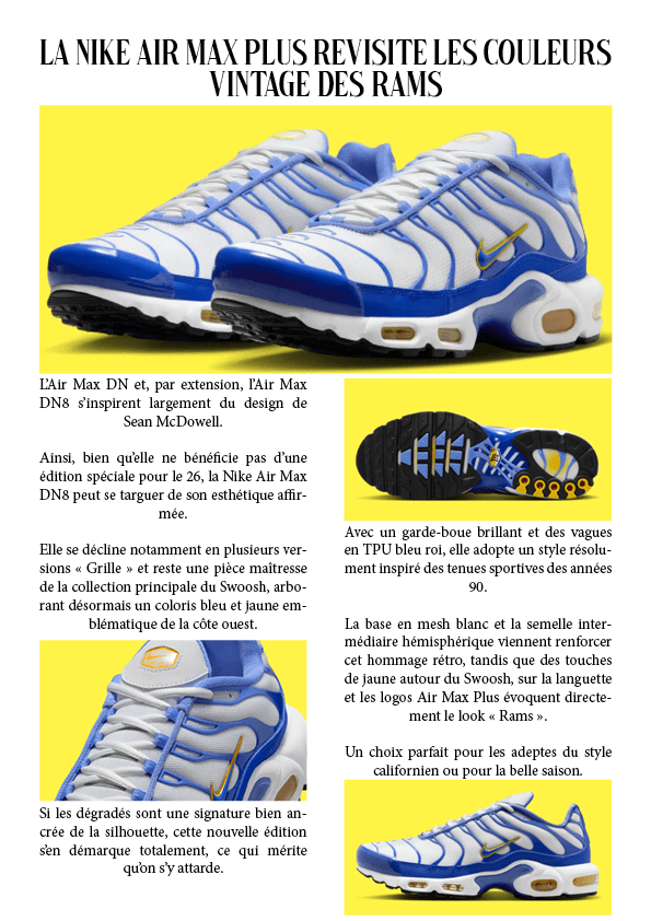 La Nike Air Max Plus revisite les couleurs vintage des Rams 16 juin 20252 avril 2025 par dunkiin Partager : Cliquer pour partager sur X(ouvre dans une nouvelle fenêtre) X Cliquez pour partager sur Facebook(ouvre dans une nouvelle fenêtre) Facebook J’aime chargement… dunkiin Laisser un commentaire Annuler la réponse. Δ