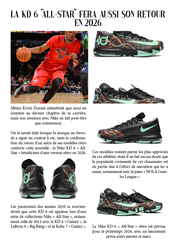 La KD 6 « All-Star » fera aussi son retour en 2026 22 juillet 20251 Mai 2025 par dunkiin Partager : Cliquer pour partager sur X(ouvre dans une nouvelle fenêtre) X Cliquez pour partager sur Facebook(ouvre dans une nouvelle fenêtre) Facebook J’aime chargement… dunkiin Laisser un commentaire Annuler la réponse. Δ