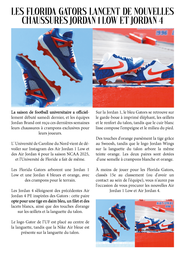 Les Florida Gators lancent de nouvelles chaussures Jordan 1 Low et Jordan 4 5 septembre 20254 septembre 2025 par dunkiin Partager : Cliquer pour partager sur X(ouvre dans une nouvelle fenêtre) X Cliquez pour partager sur Facebook(ouvre dans une nouvelle fenêtre) Facebook J’aime chargement… dunkiin Laisser un commentaire Annuler la réponse. Δ
