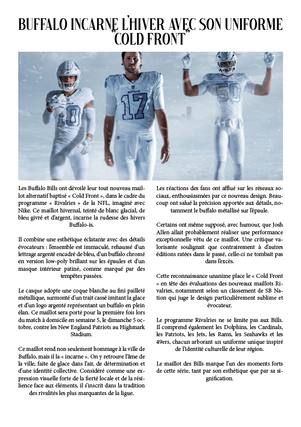 Buffalo incarne l’hiver avec son uniforme « Cold Front » 7 septembre 20256 septembre 2025 par dunkiin ACHETE LE MAILLOT ICI Partager : Cliquer pour partager sur X(ouvre dans une nouvelle fenêtre) X Cliquez pour partager sur Facebook(ouvre dans une nouvelle fenêtre) Facebook J’aime chargement… dunkiin Laisser un commentaire Annuler la réponse. Δ