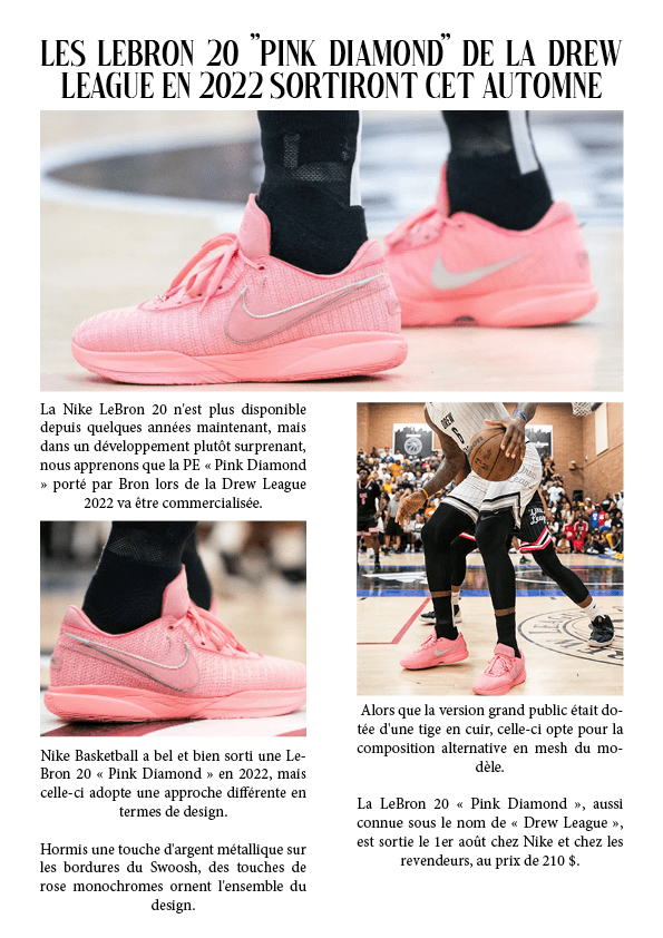 Les LeBron 20 « Pink Diamond » de la Drew League en 2022 sortiront cet automne 21 septembre 202513 juillet 2025 par dunkiin Partager : Cliquer pour partager sur X(ouvre dans une nouvelle fenêtre) X Cliquez pour partager sur Facebook(ouvre dans une nouvelle fenêtre) Facebook J’aime chargement… dunkiin Laisser un commentaire Annuler la réponse. Δ