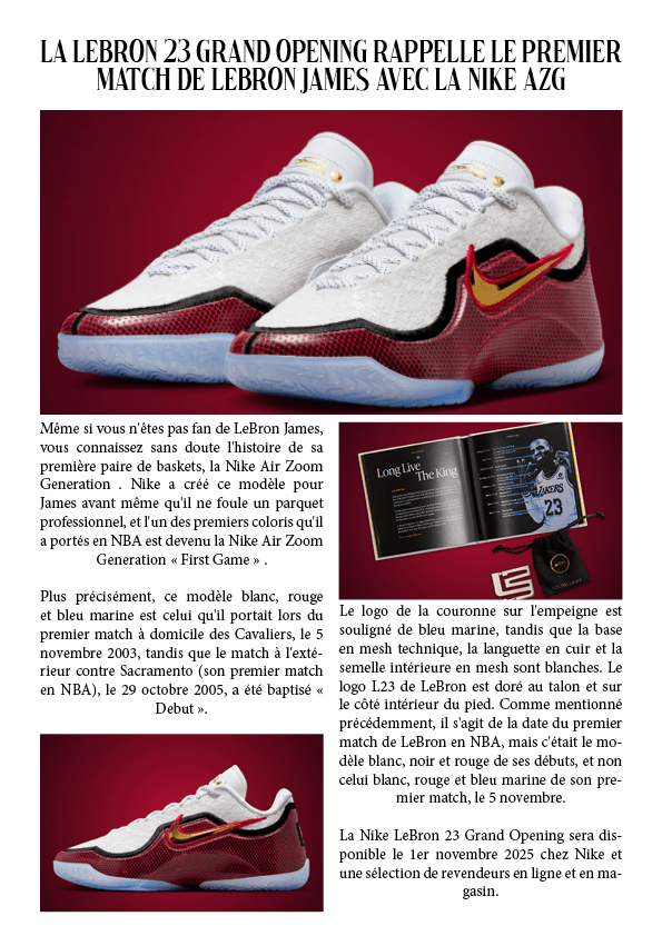 La LeBron 23 Grand Opening rappelle le premier match de LeBron James avec la Nike AZG 29 octobre 202529 octobre 2025 par dunkiin Partager : Cliquer pour partager sur X(ouvre dans une nouvelle fenêtre) X Cliquez pour partager sur Facebook(ouvre dans une nouvelle fenêtre) Facebook J’aime chargement… dunkiin Laisser un commentaire Annuler la réponse. Δ