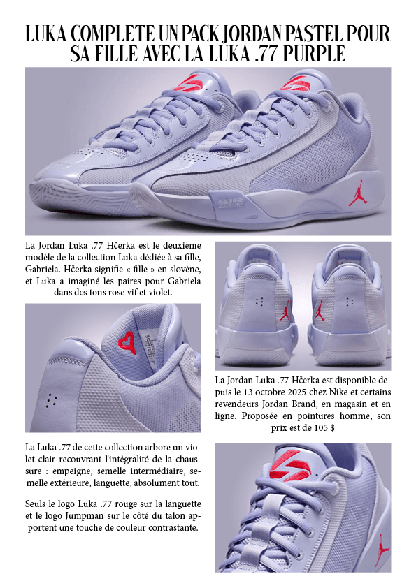 Luka complète un pack Jordan pastel pour sa fille avec la Luka .77 Purple 17 novembre 202510 novembre 2025 par dunkiin Partager : Cliquer pour partager sur X(ouvre dans une nouvelle fenêtre) X Cliquez pour partager sur Facebook(ouvre dans une nouvelle fenêtre) Facebook J’aime chargement… dunkiin Laisser un commentaire Annuler la réponse. Δ